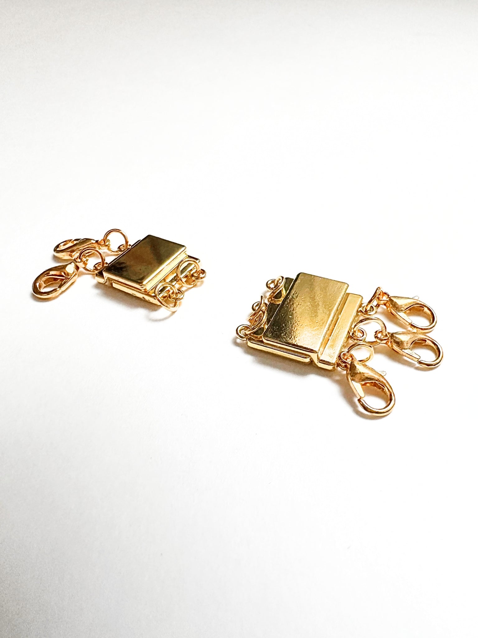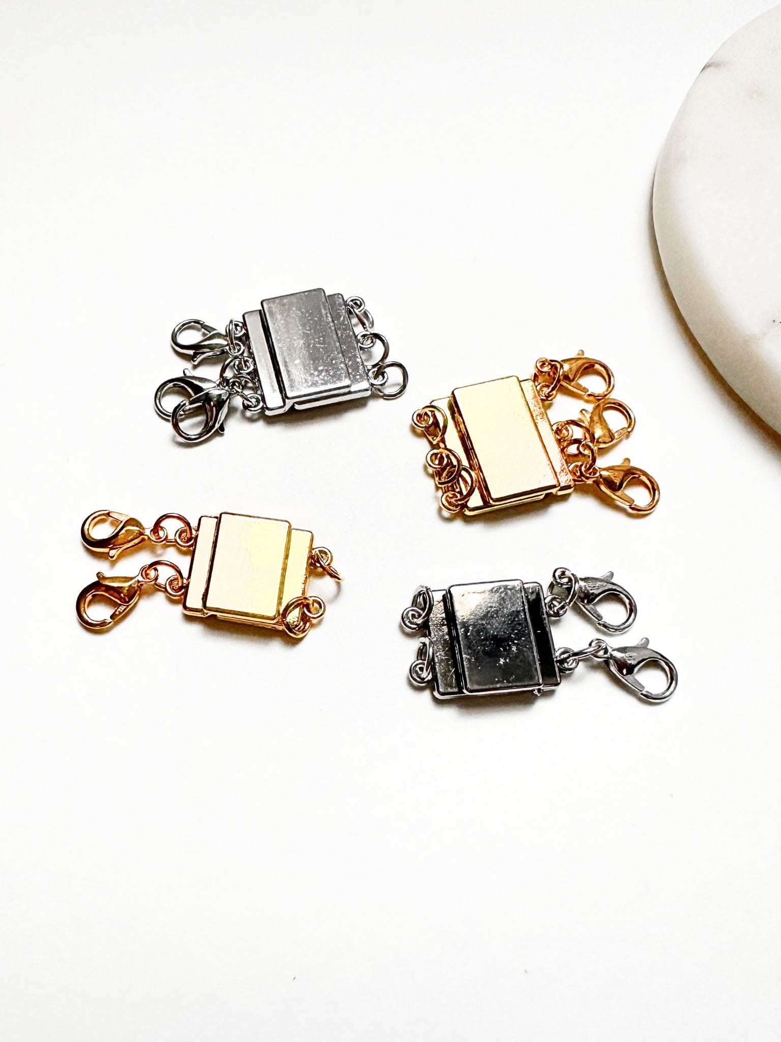 Love to layer multiple necklaces, but hate the way they keep getting tangled? Keep your necklaces tangle-free with our layered necklace clasps! Our two-piece layered magnetic connectors feature lobster clasp closures and are made with gold-plated or silver-plated stainless steel.