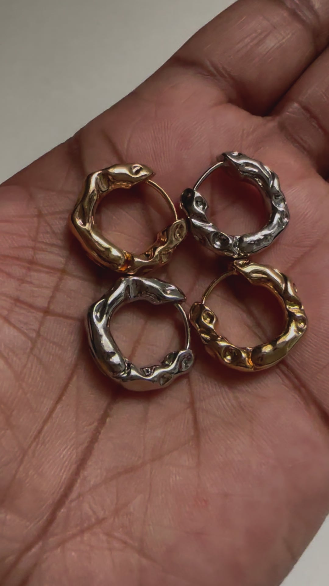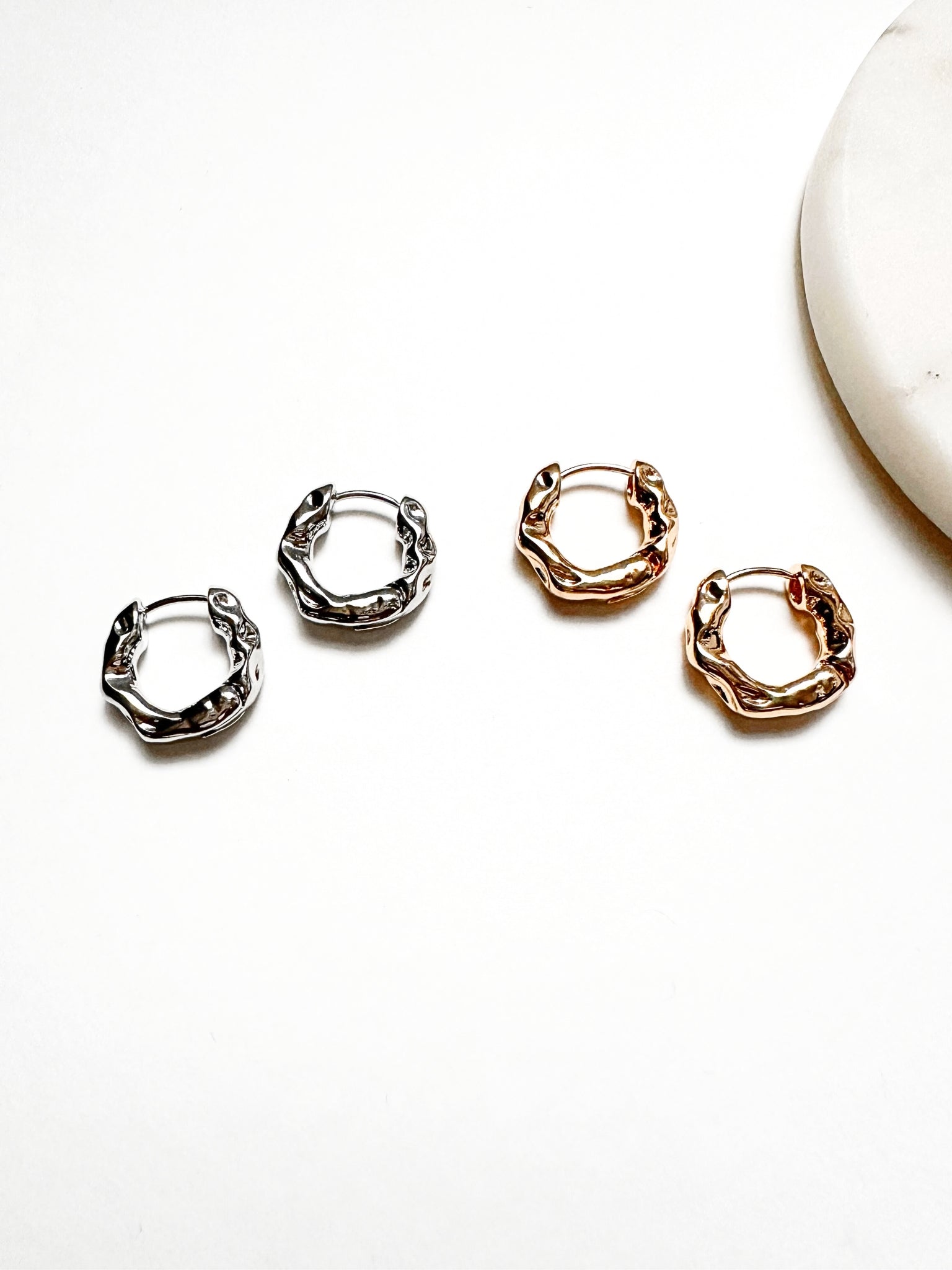Part of our B+B Collection, the classic Pilar Mini Hoops features an unmistakable molten texture with a latch-back closure. These little hoops will easily become your new favorite!
