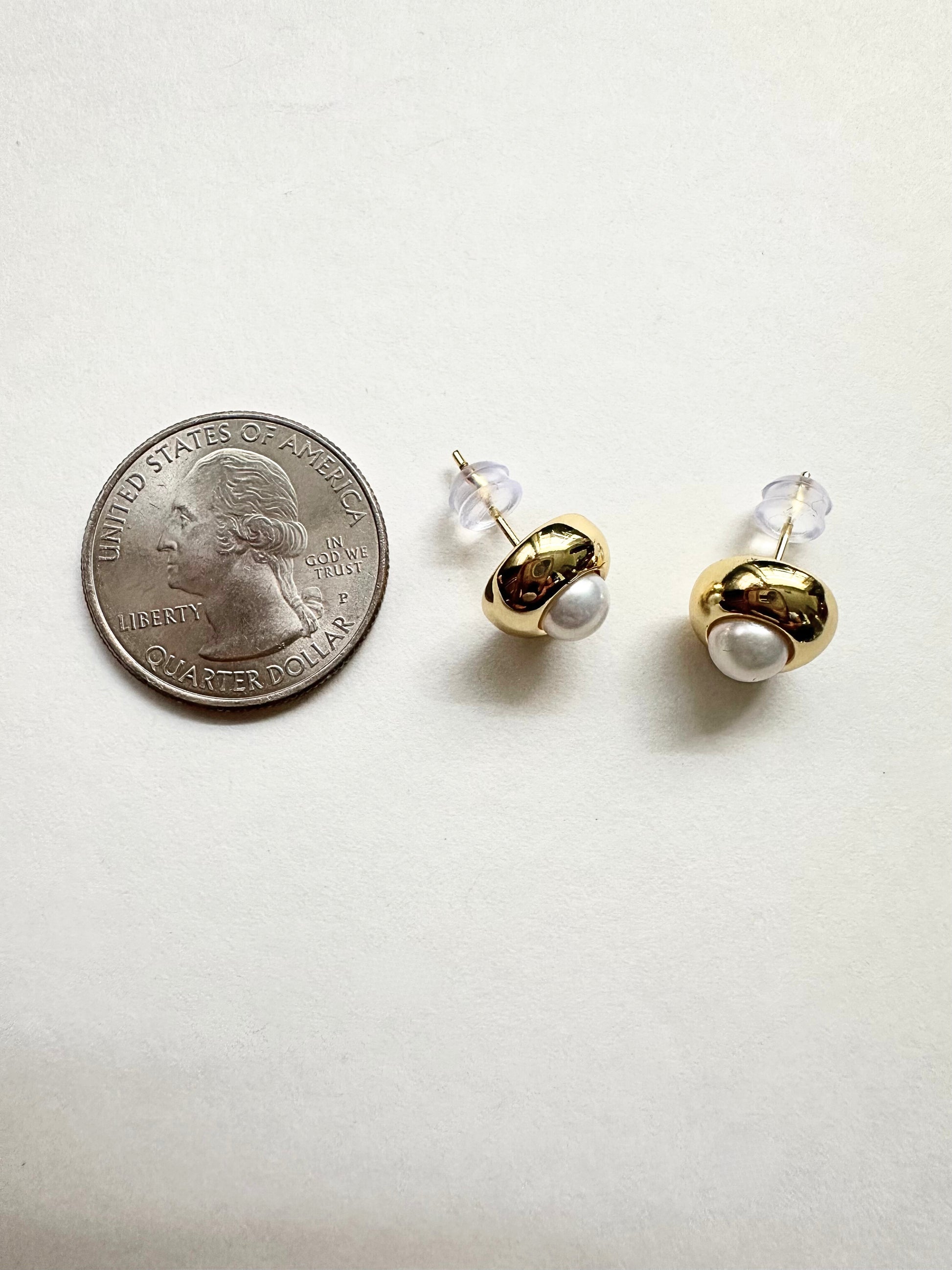 Looking for a classic and elegant pair of studs? Our Suri Stud Earrings are the perfect choice! Small gold bezel stud earrings featuring a white pearl in the center. Push-back closure.